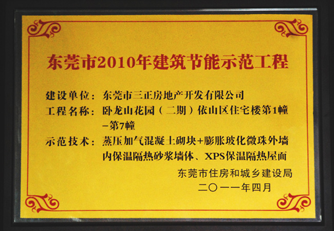 三正地產(chǎn)積極相應(yīng)國家政策,在商品房物業(yè)的打造上,嚴(yán)把規(guī)劃設(shè)計與工程施工關(guān),結(jié)合國家對房地產(chǎn)設(shè)計行業(yè)規(guī)劃、設(shè)計方面新的要求,推進(jìn)建筑環(huán)保節(jié)能,并取得了不俗的成績。其中,三正臥龍山依山居1~7幢因采用蒸壓加氣混凝土砌塊+膨脹玻化微珠外墻、內(nèi)保溫隔熱砂漿墻體、XPS保溫隔熱屋面等新型環(huán)保節(jié)能材料,被評為“東莞市2010年建筑節(jié)能示范工程”,獲得政府表彰與嘉獎。