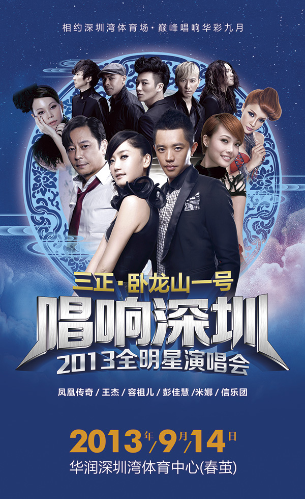 三正臥龍山一號“唱響深圳2013年全明星演唱會”,將于9月14日在深圳灣體育中心(春繭)激情開唱。
