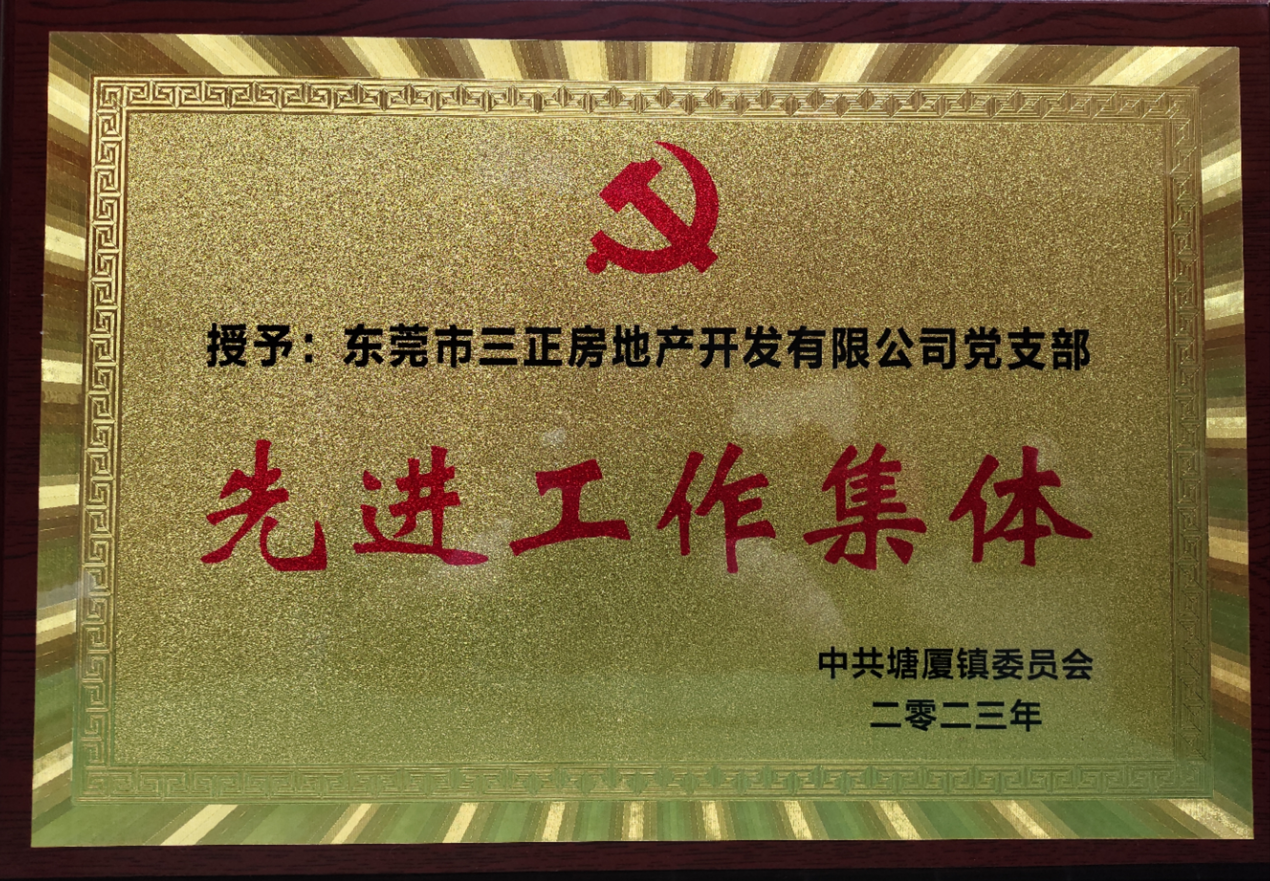 三正房地產黨支部喜獲“2023年度塘廈鎮黨建工作先進單位”